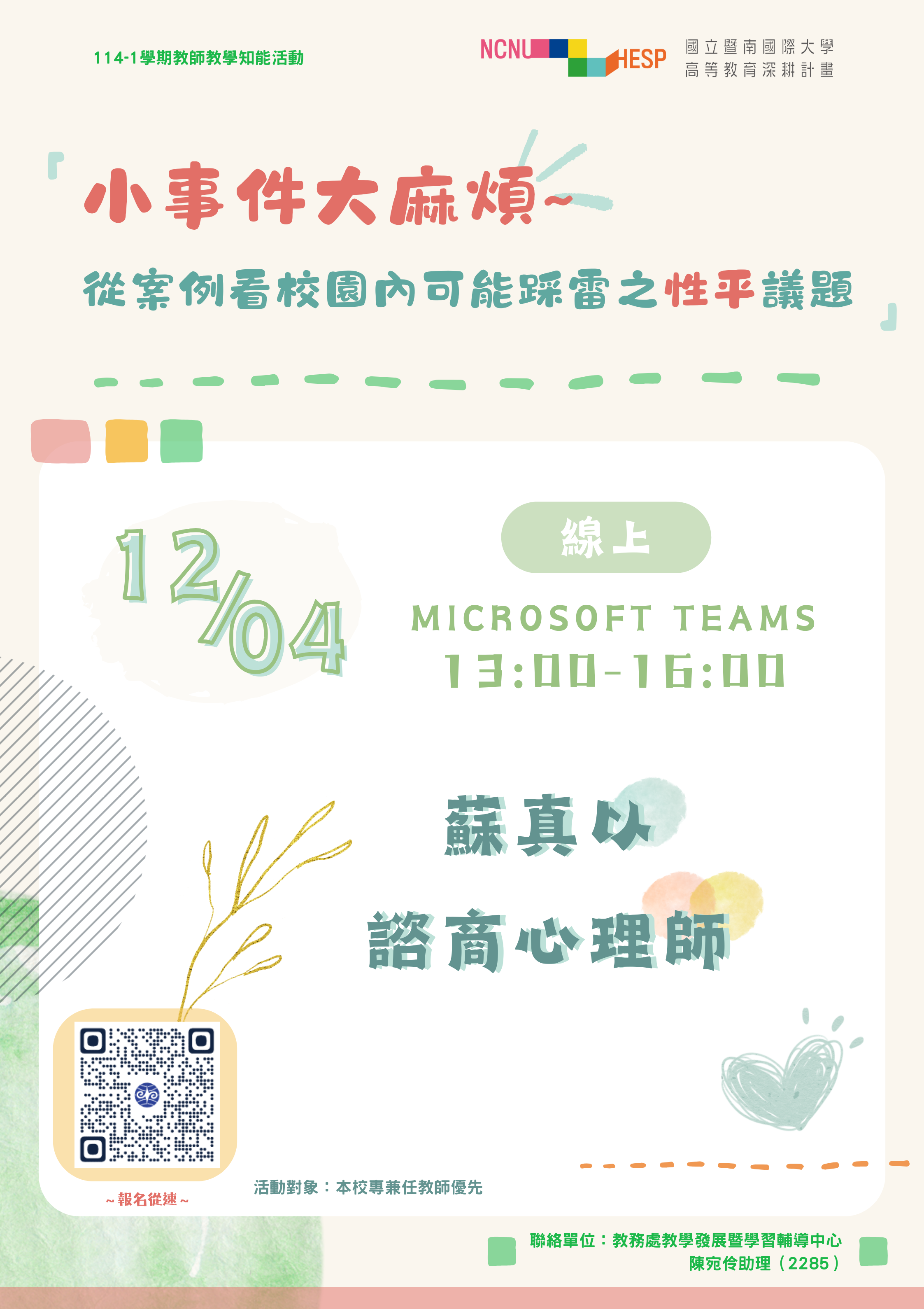 [教務處] 性平講座
