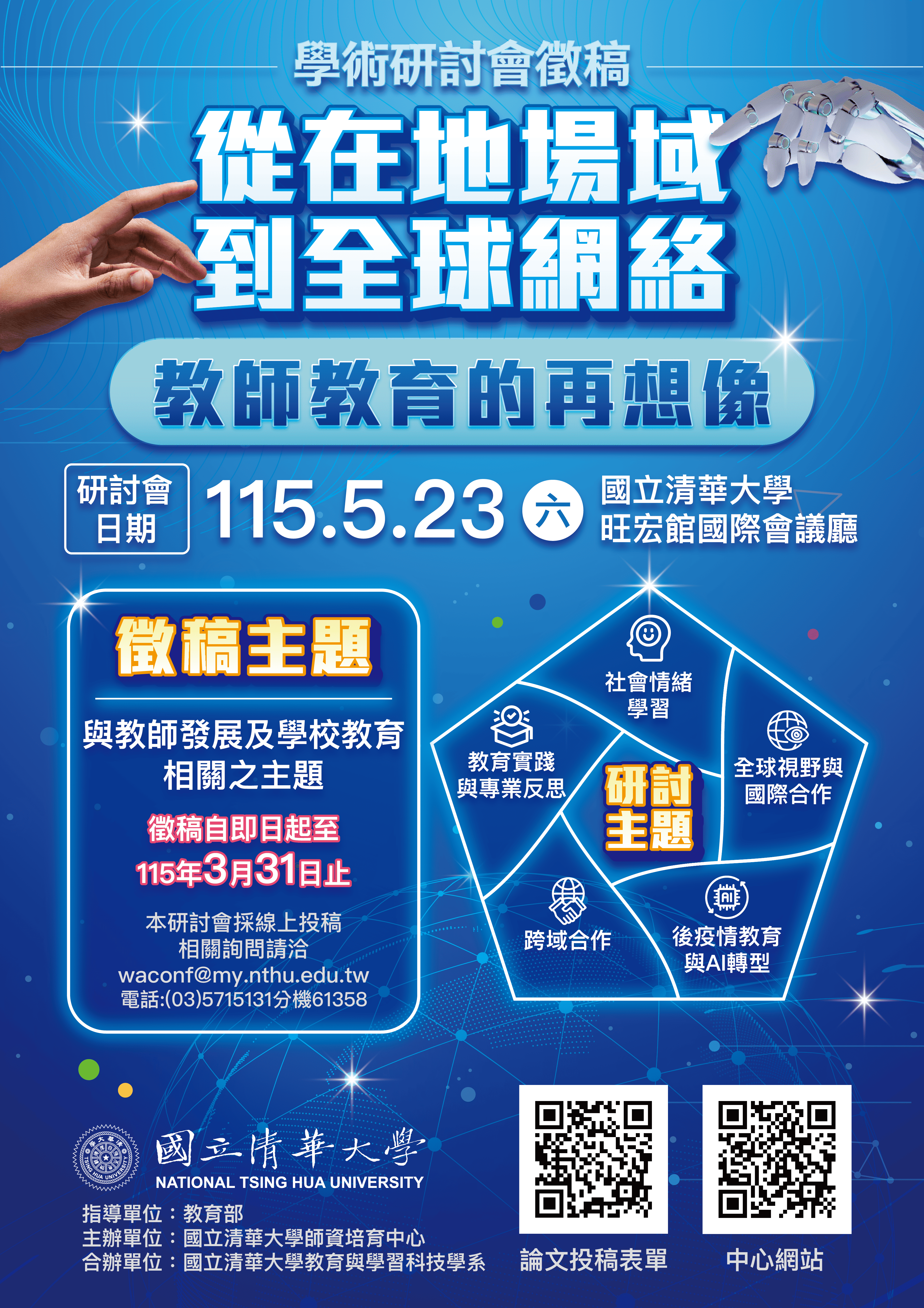 [國立清華大學] 「從在地場域到全球網絡:教師教育的再想像」學術研討會徵稿